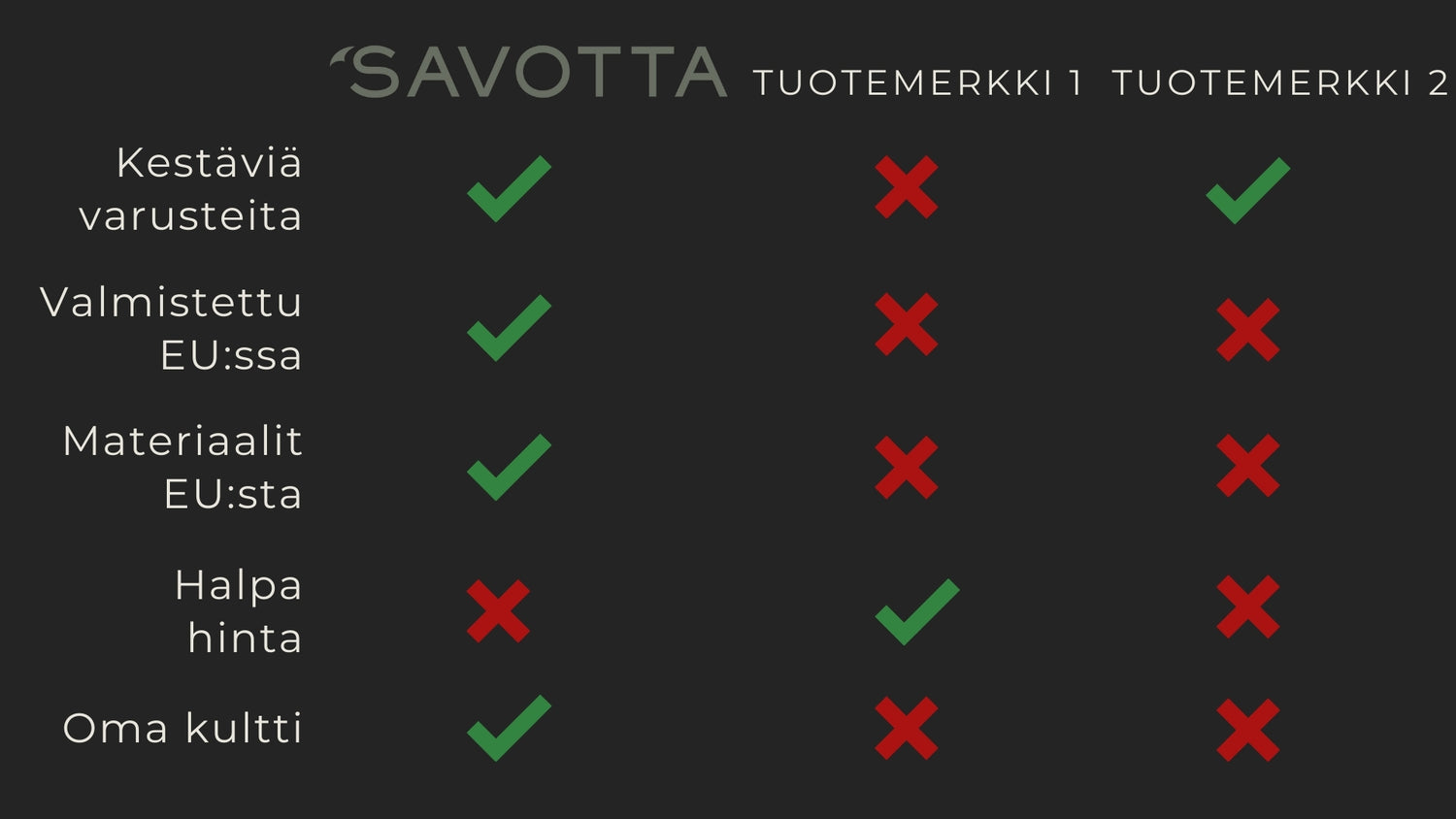Muita tuotemerkkejä saatetaan mainostaa alhaisilla hinnoilla, mutta se tapahtuu usein kestävyyden, eettisyyden ja laadun kustannuksella.
